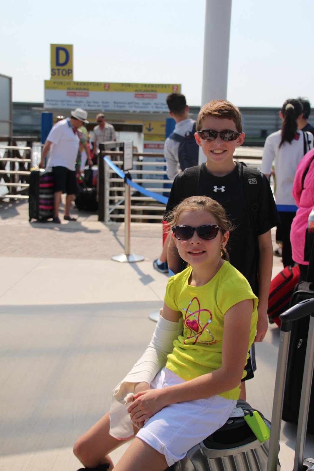 We left Thursday around noon and flew to Philly. I was post-call and had only gotten a few hours of sleep the night before so I slept for about 1.5 hours on this flight. Everyone was well-behaved. About an hour layover in Philly allowed us to charge our devices a little and snack on some hot pretzels and then it was time to board our international flight. Trevor was excited because we were on an Airbus and he had just learned about the huge Airbus plane that is being made that has a gym and bedrooms on it. Our plane was nothing like that - just a really large version of a normal plane. We were four across the center.